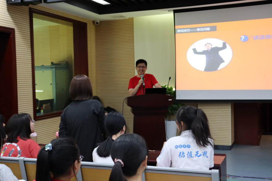负责2020届毕业生就业工作的李唯老师就当前应届生就业现状、疫情常态下就业市场的需求变化,并结合自身成长、发展方面经历的做了经验分享。随后红杉根科技有限公司HRBP黄以时先生结合校企人才供需合作,介绍了简历制作技巧、应聘礼仪以及面试技巧,并就现场学生疑问做出解答。